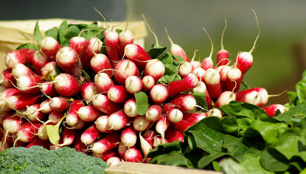 Radishes are usually harvested when they are about one inch in diameter. They are typically mature when the shoulders begin to push up out of the soil. When harvesting the plants, carefully dig up or pull them as soon as they are mature. If they are left in the ground for too long, the roots will become fibrous and taste bitter. Radishes can be stored in water at room temperature for 2-4 days, or in the refrigerator in a reusable bag with a moist paper towel for 1-2 weeks.
