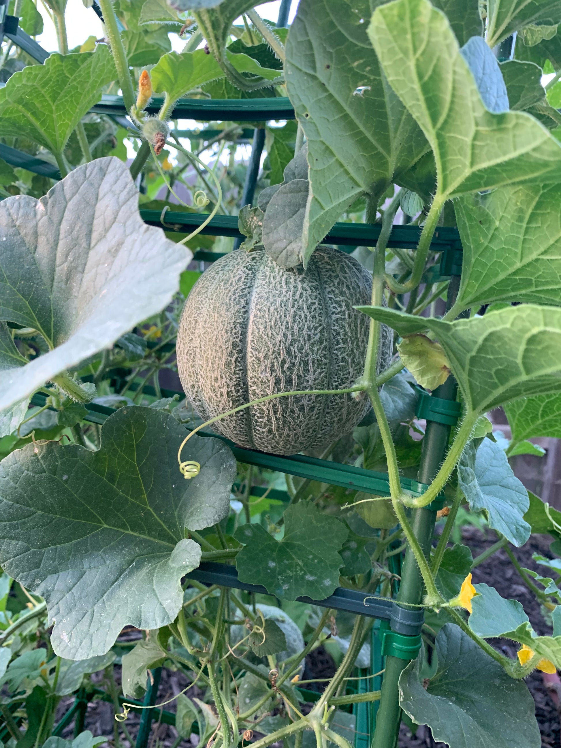 Cantaloupes need fertile, well-drained soil with a pH of 6.5 to 7.5. Plant seeds 1-1 ½ inches deep. Thin to 1 plant per pot. Plants can be transplanted once they have developed at least four leaves. Wait to transplant until daytime temperatures remain above 70˚ F and nighttime temperatures remain above 65°F. Plants do not tolerate cold temperatures.